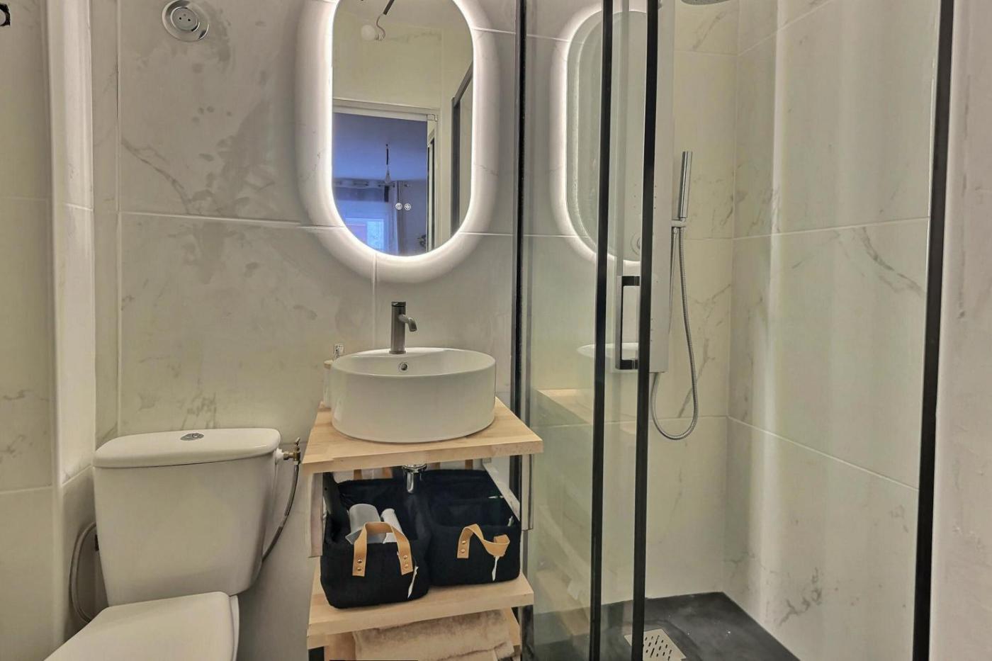One-Bedroom Apartment. The air-conditioned apartment features 1 bedroom, 1 bathroom and a kitchenette. The apartments kitchenette is available for cooking and storing food. This apartment offers heating and a flat-screen TV. The unit offers 1 bed.