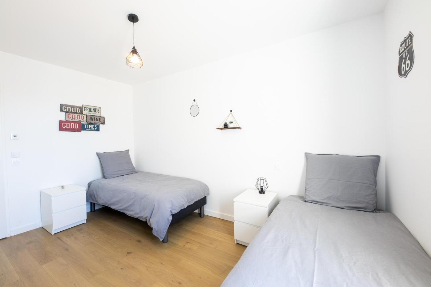 Two-Bedroom Apartment. This apartment comprises 1 living room, 2 separate bedrooms and 1 bathroom with a shower and free toiletries. In the well-fitted kitchen, guests will find a refrigerator, a dishwasher, kitchenware and an oven. This apartment features a washing machine, a coffee machine, a TV with streaming services and a terrace. The unit offers 3 beds.