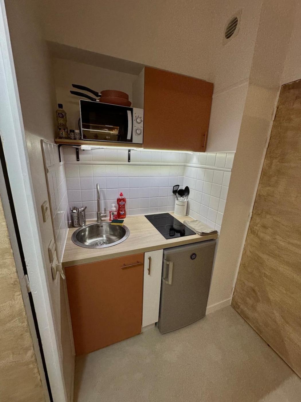 One-Bedroom Apartment. Boasting a private entrance, this apartment features a kitchen, 1 bedroom and 1 bathroom with a shower and a hairdryer. Guests can make meals in the kitchen that features a stovetop, a refrigerator, a microwave and a tea and coffee maker. The apartment features soundproof walls, a dining area, a sofa, parquet floors, as well as a flat-screen TV. The unit has 1 bed.