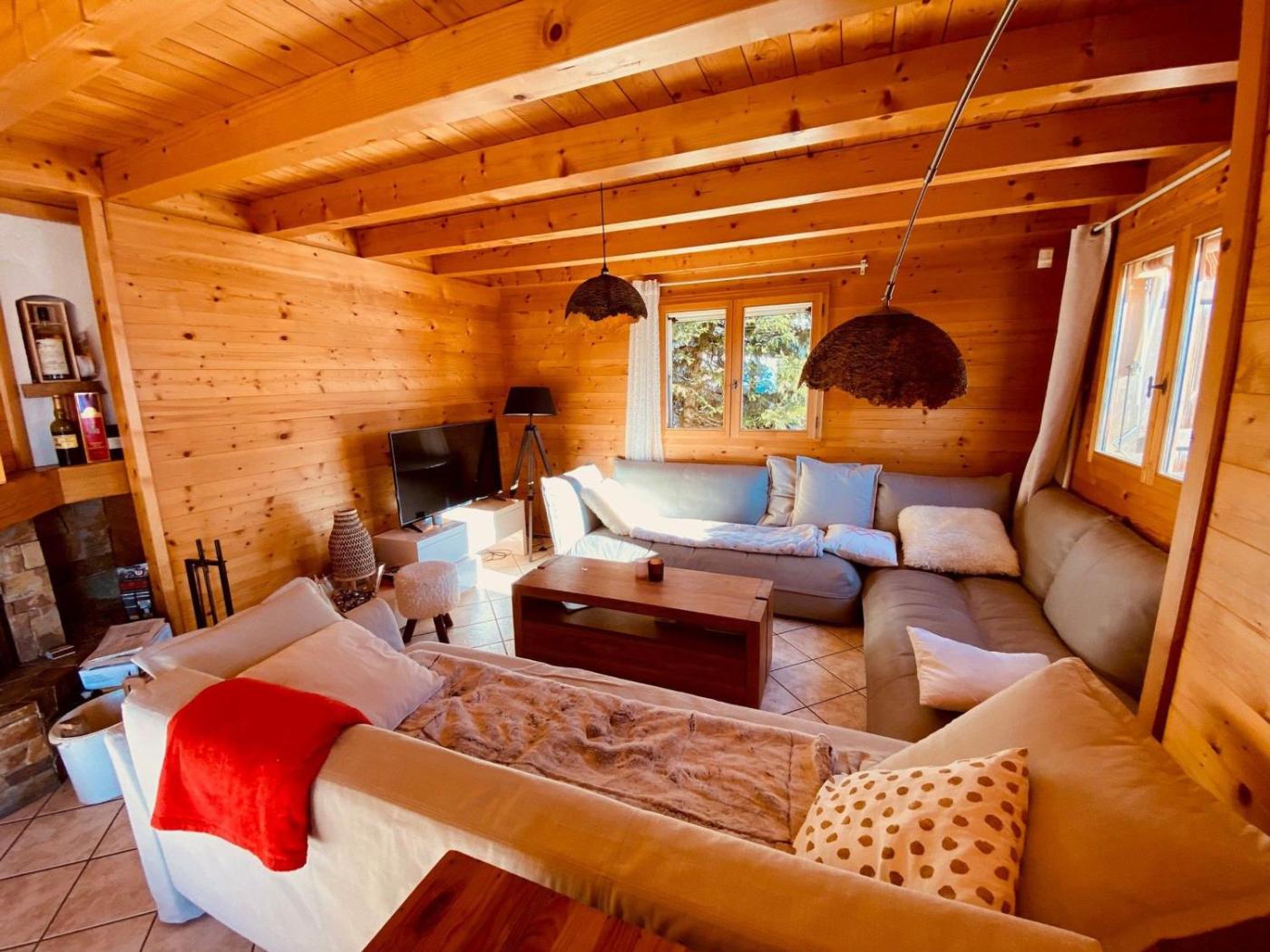 Chalet. Guests will have a special experience as the chalet features a fireplace. Featuring 4 bedrooms and 2 bathrooms, this spacious chalet offers a well-fitted kitchen and a dining area. In the well-equipped kitchen, guests will find a refrigerator, a dishwasher, kitchenware and a microwave. The chalet provides a washing machine, a private entrance, tumble dryer, heating, as well as a TV.