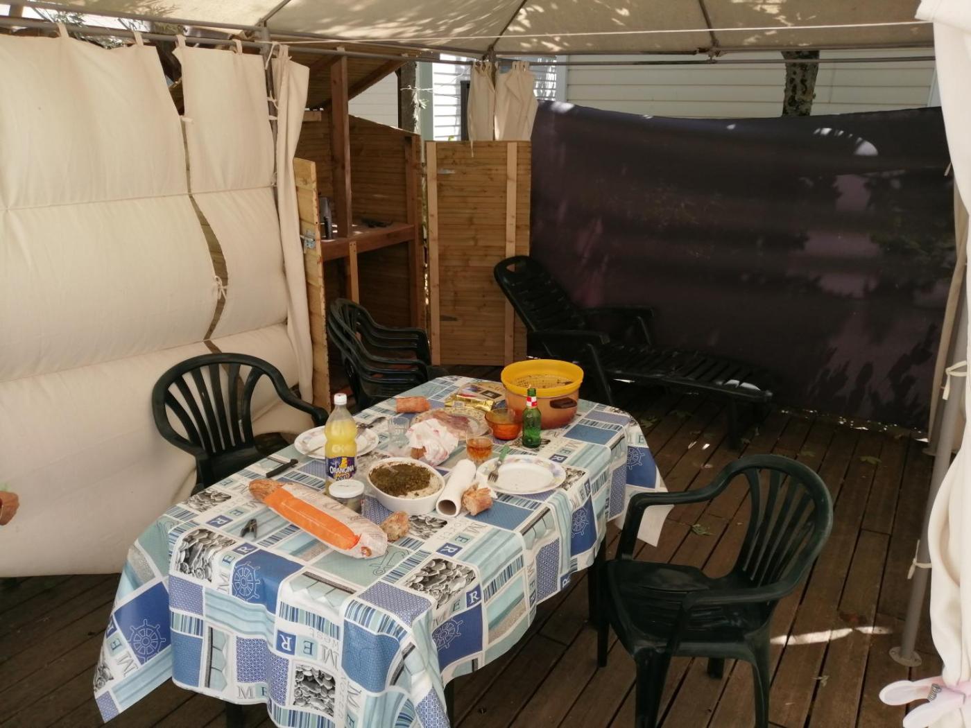 Mobile Home. Boasting a private entrance, this mobile home comes with 1 living room, 2 separate bedrooms and 1 bathroom with a shower. Guests will find a stovetop, a refrigerator, kitchenware and a microwave in the well-equipped kitchen. The mobile home also includes a barbecue. Featuring a terrace with a quiet street view, this mobile home also features a coffee machine and a flat-screen TV with satellite channels. The unit has 3 beds.