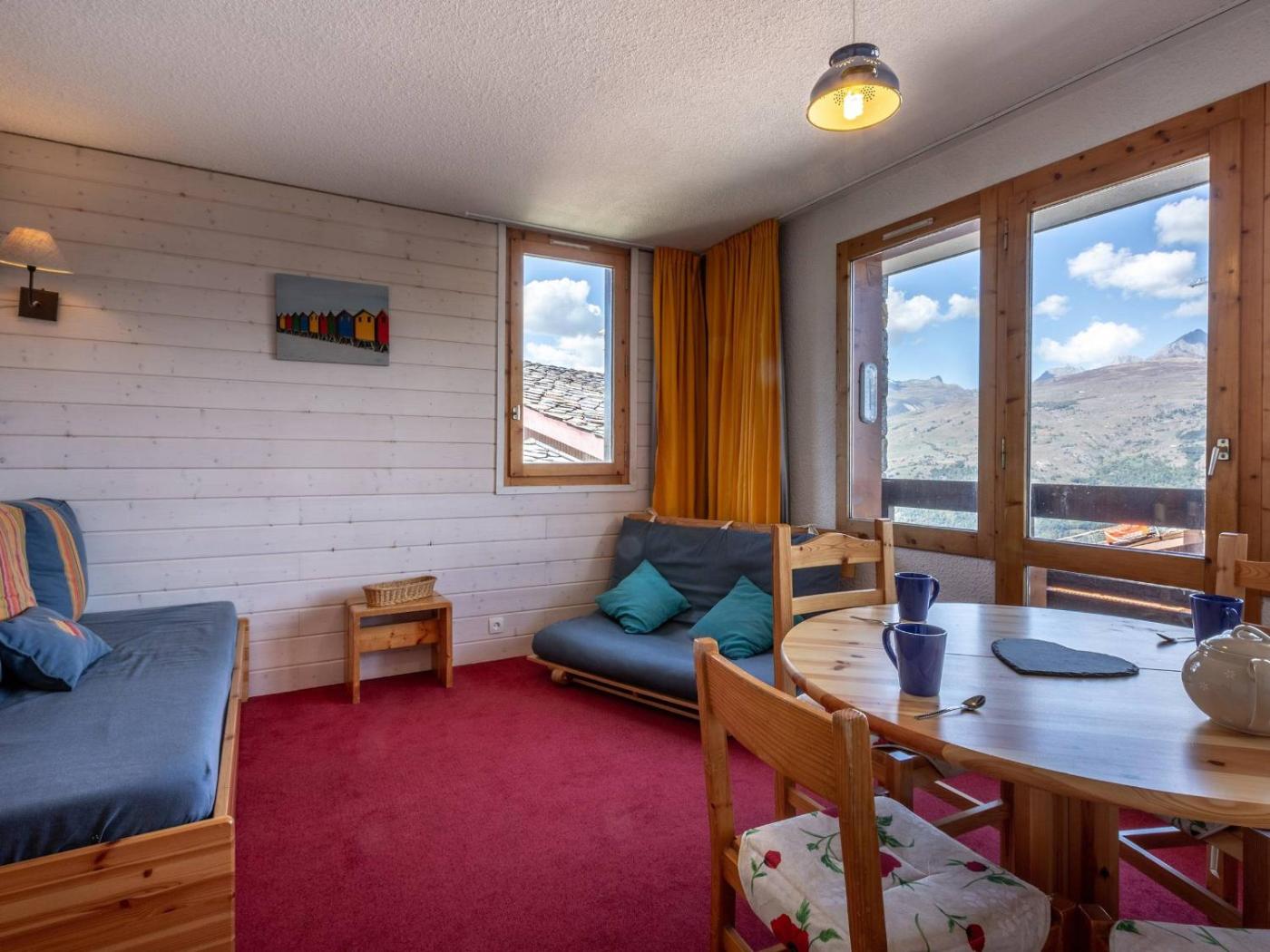 Set in La Plagne in the Rhône-Alps region, Studio cabine 3 personnes, cuisine équipée, animaux acceptés, proche pistes et commerces - FR-1-353-28 has a balcony. The 1-star apartment features mountain views and is 15 km from La Plagne.
