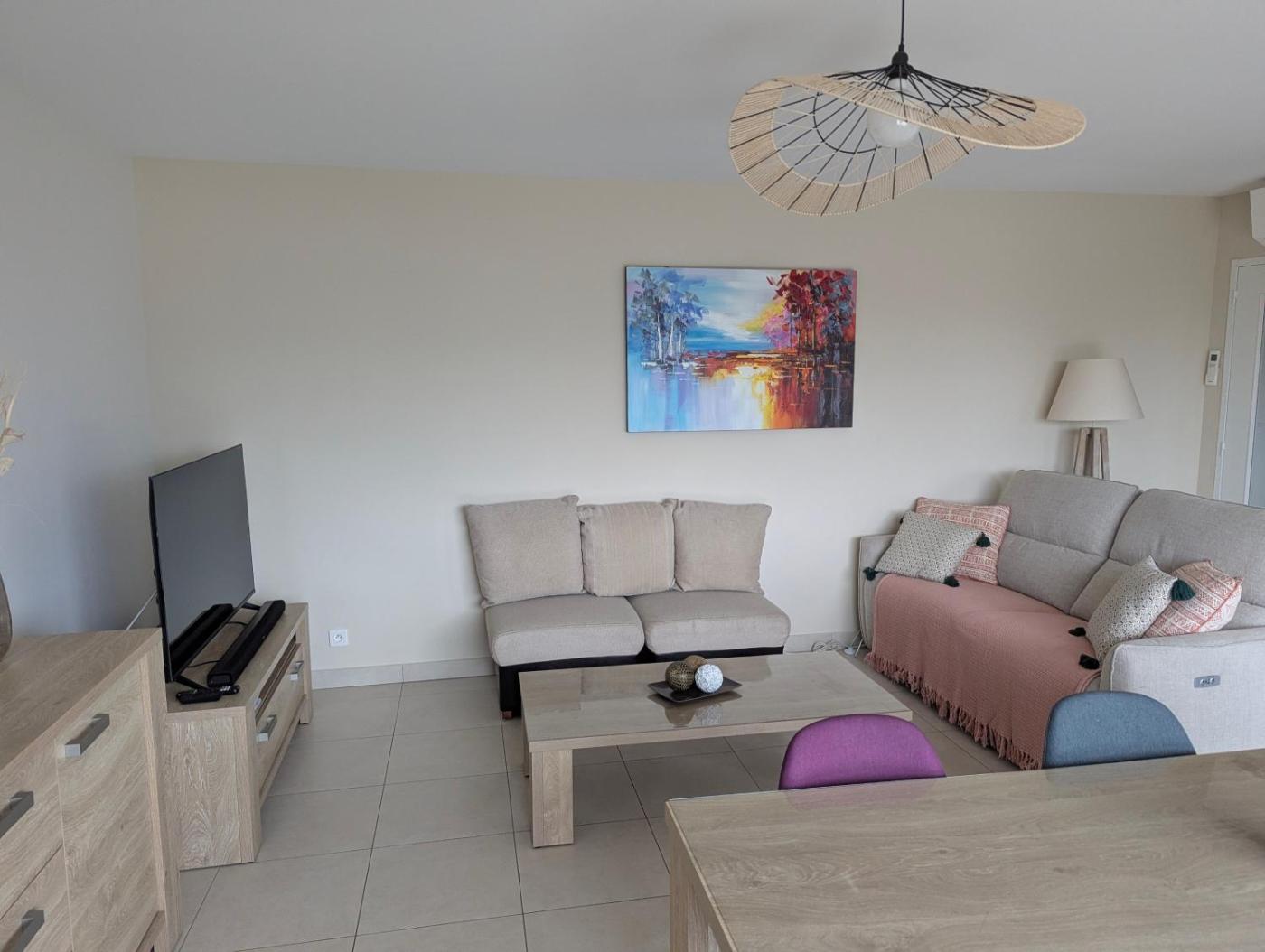 Apartment. This spacious apartment comprises 1 living room, 3 separate bedrooms and 2 bathrooms with a bath and a shower. Meals can be prepared in the well-fitted kitchen, which comes with a stovetop, a refrigerator, a dishwasher and kitchenware. The air-conditioned apartment provides a flat-screen TV, a washing machine, a tea and coffee maker, a seating area as well as sea views. The unit offers 5 beds.