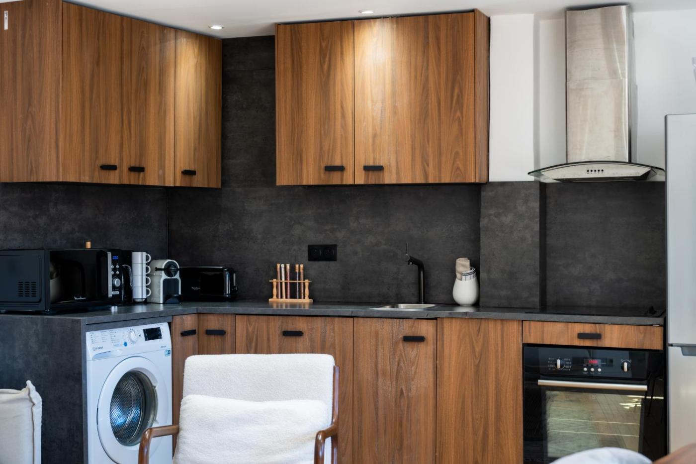 One-Bedroom Apartment. Guests will have a special experience as this apartment provides a fireplace. This air-conditioned apartment is comprised of 1 living room, 1 separate bedroom and 1 bathroom with a bath. In the kitchen, guests will find a refrigerator, a dishwasher, kitchenware and an oven. The apartment offers a washing machine, a tea and coffee maker, a dining area, a flat-screen TV, as well as city views. The unit offers 3 beds.