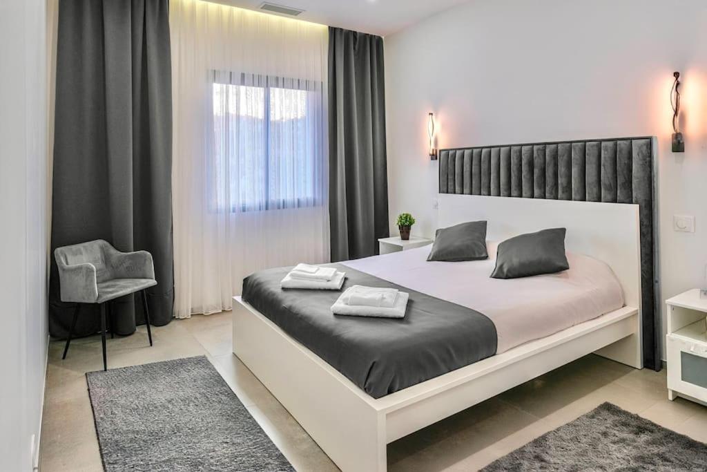 Villa. This villa offers a pool with a view. Featuring a private entrance, this air-conditioned villa comprises a kitchen, 5 bedrooms and 5 bathrooms with a shower and a hairdryer. Guests will find a stovetop, a refrigerator, a dishwasher and an oven in the kitchen. The villa also provides guests with a barbecue. Boasting a terrace with sea views, this villa also provides a washing machine and a flat-screen TV with streaming services. The unit offers 6 beds.