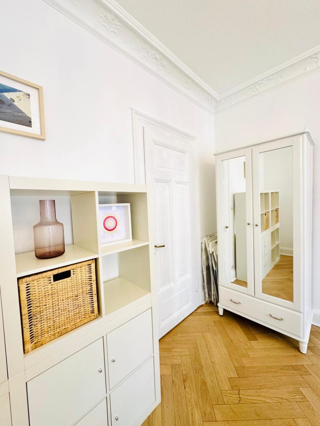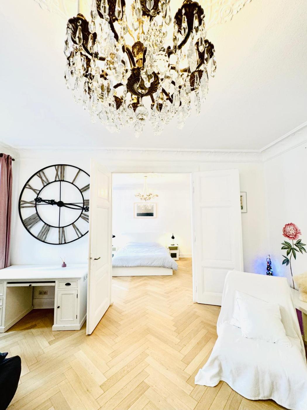 Three-Bedroom Apartment. Featuring a private entrance, this spacious apartment also comprises 1 living room, 2 separate bedrooms and 1 bathroom with a bath. Guests can make meals in the kitchen that comes with a stovetop, a refrigerator, a dishwasher and kitchenware. The apartment is furnished with a desk and a seating area and provides a washing machine, a tea and coffee maker and a quiet street view. The unit offers 4 beds and 1 futon.