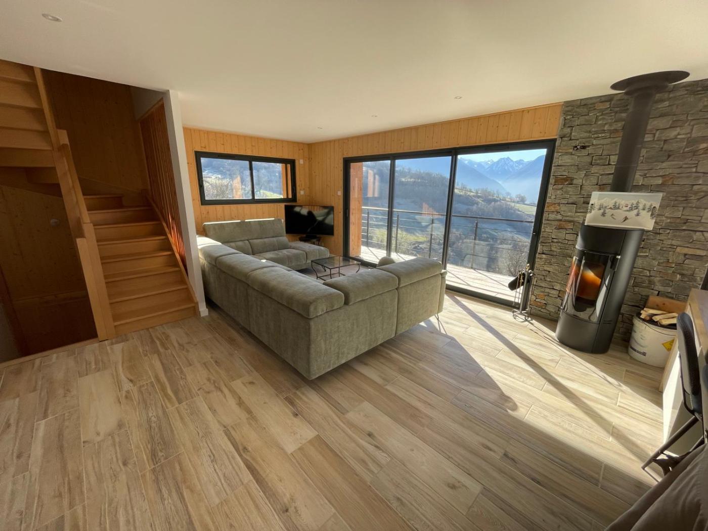The spacious chalet with a terrace and mountain views features 4 bedrooms, a living room, a flat-screen TV, an equipped kitchen with a dishwasher and an oven, and 2 bathrooms with a bath. Guests can enjoy a meal on an outdoor dining area while overlooking the garden views. For added privacy, the accommodation has a private entrance and soundproofing.